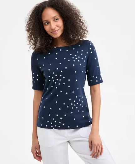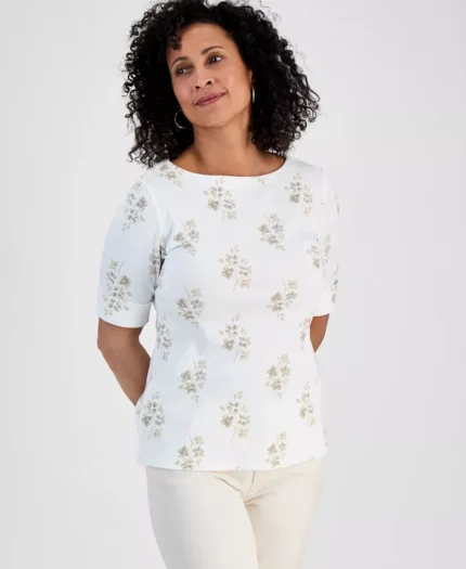 Be the first to review “Petite Floral-Print Curved-Hem Bateau-Neck Blouse” Cancel reply