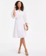 Women’s 3/4 Sleeve Eyelet Cotton Dress, Exclusively at Macy’s