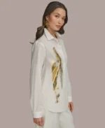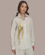 Women’s Metallic Brushstroke Button Down Shirt